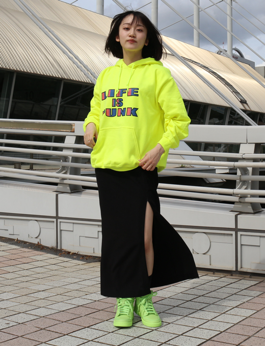 Life is PunkのBIGロゴプリントパーカーです。 ライブハウスやフェスでも目立つ一枚です。